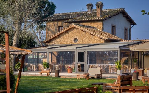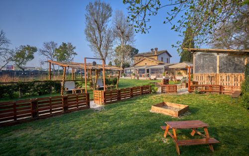 Casale Traiano offre ampi spazi all’aperto dove organizzare aperitivi al tramonto, pic-nic, giochi di gruppo o momenti di relax. Gli ambienti interni sono perfetti per feste intime e riservate. La struttura propone anche tre camere per chi desidera pernottare in loco e vivere l’esperienza fino in fondo.